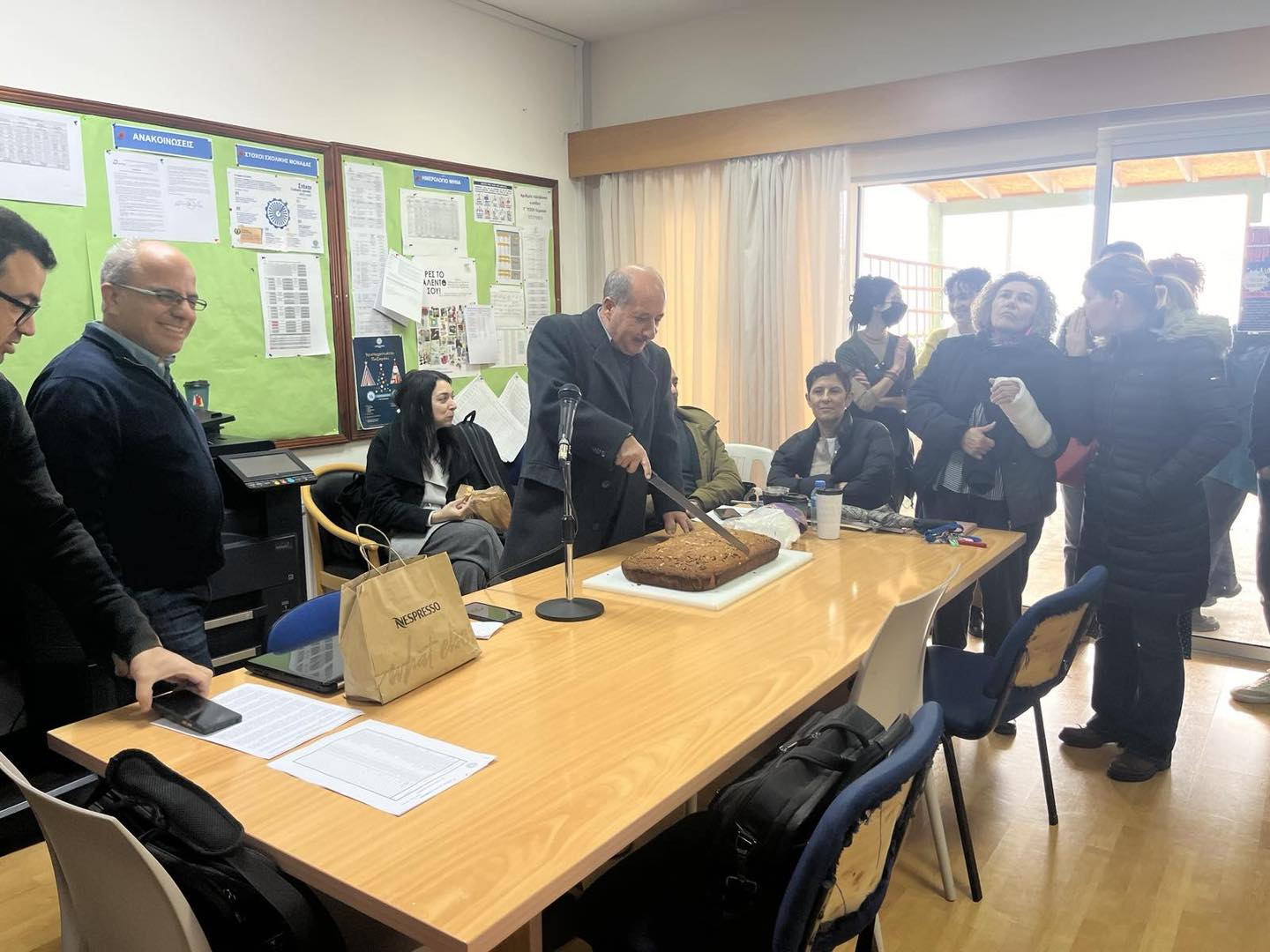 Παρουσία όλων των εκπαιδευτικών και μελών του προσωπικού του σχολείου τηρήθηκε το καθιερωμένο έθιμο της βασιλόπιτας. Ο Διευθυντής με την κοπή της πίτας ευχήθηκε σε όλους η νέα χρονιά να είναι δημιουργική, με υγεία, πρόοδο και επιτυχίες για όλους.