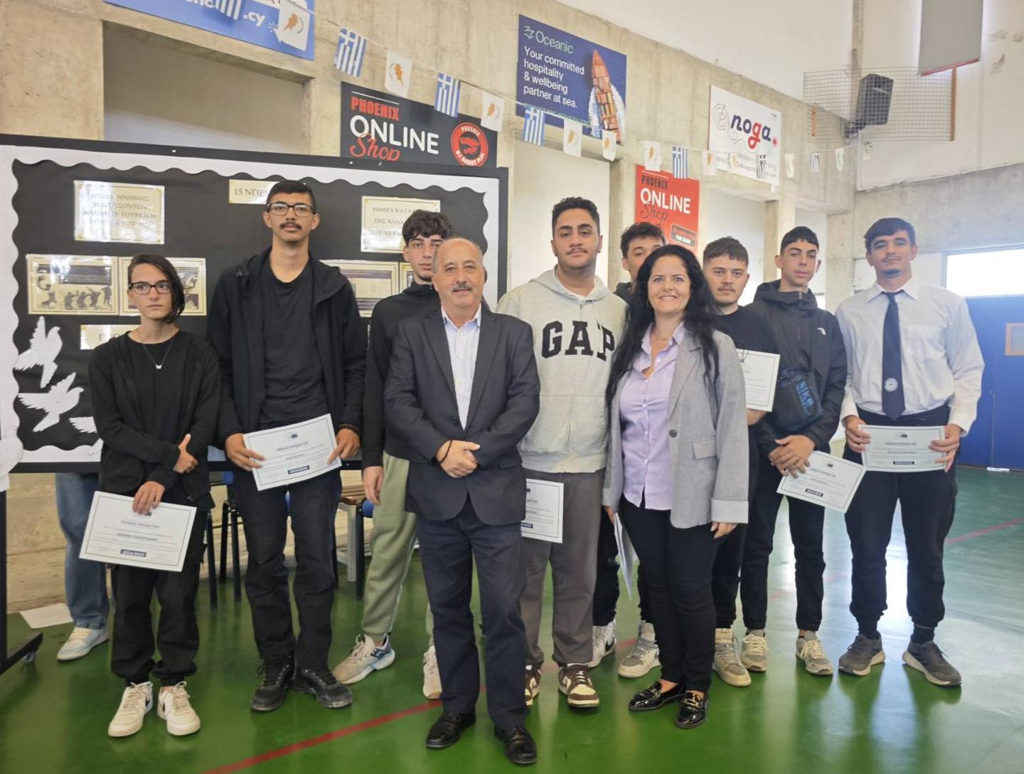 Η Διεύθυνση της Σχολή τίμησε με τιμητικά διπλώματα τους μαθητές, που συμμετείχαν τη χρονιά 2024-25 στο πρόγραμμα " Σχολείο Πρεσβευτής του Ευρωπαϊκού Κοινοβουλίου". Το πρόγραμμα συντόνιζε η Φιλόλογος Κατερίνα Χριστοδούλου.