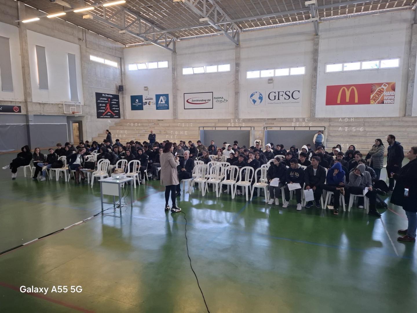 Την Τετάρτη 17/12 επισκέφθηκε το σχολείο μας η Δρ Άννα Μαρία Ανδρονίκου, η οποία ενημέρωσε εκπαιδευτικούς και μαθητές για τον ρόλο και την προσφορά του Καραϊσκάκειου Ιδρύματος. Οι μαθητές μας άκουσαν με προσοχή τη διάλεξη και ακολούθως έδωσαν εθελοντικά δείγμα σάλιου για να εγγραφούν στο Κυπριακό Αρχείο Δοτών. Η προθυμία τους απέδεξε τον βαθμό ωριμότητας και ευαισθησίας τους σε κοινωνικά θέματα. Μπράβο στους μαθητές μας.