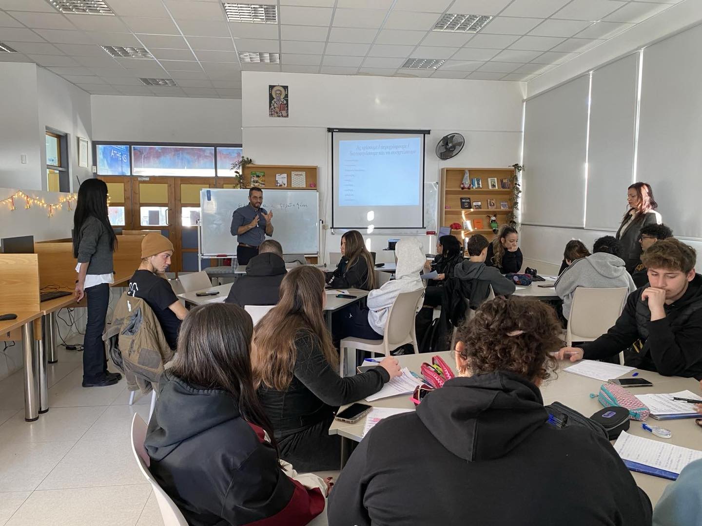 Την Τρίτη, 16/12/2025, είχαμε τη χαρά να φιλοξενήσουμε στο σχολείο μας τον κ. Παναγιώτη Θωμά, Δρα Θεολογίας, συγγραφέα και εκπαιδευτή του Παιδαγωγικού Ινστιτούτου Κύπρου. Ο κ. Θωμά παρουσίασε στους μαθητές μας τις διάφορες έννοιες που σχετίζονται με το θέμα του ρατσισμού, μέσα από την προβολή ταινιών μικρού μήκους, την εργασία σε ομάδες, την έρευνα, τη συζήτηση, τον διάλογο. Οι μαθητές μας προβληματίστηκαν και ευαισθητοποιήθηκαν αναφορικά με τις αρνητικές παραμέτρους του φαινομένου αυτού, ακολουθώντας μία ευχάριστη και δημιουργική διαδικασία. Ευχαριστούμε θερμά τον κ. Παναγιώτη Θωμά!
