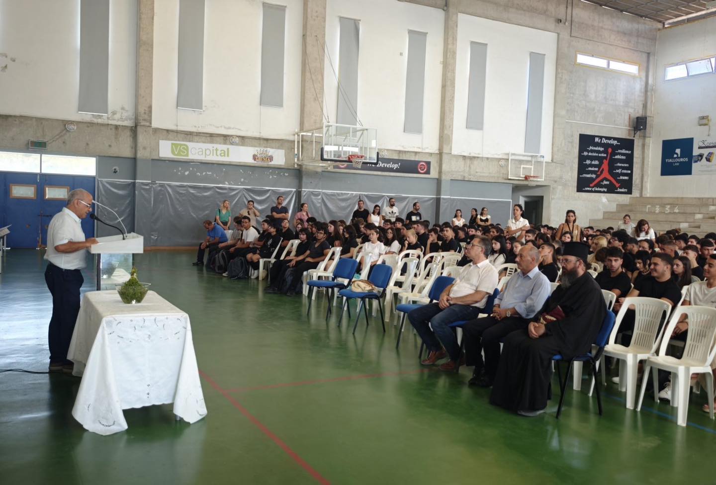 Σε κοινή συγκέντρωση των μαθητών αναγνώστηκαν το μήνυμα και οι ευχές της Υπουργού Παιδείας και του Αρχιεπισκόπου Κύπρου για τη νέα σχολική χρονιά. Ακολούθως, τελέστηκε ο καθιερωμένος αγιασμός της σχολικής κοινότητας από τον αιδεσιμότατο π. Κωνσταντίνο Γιαννακού.
